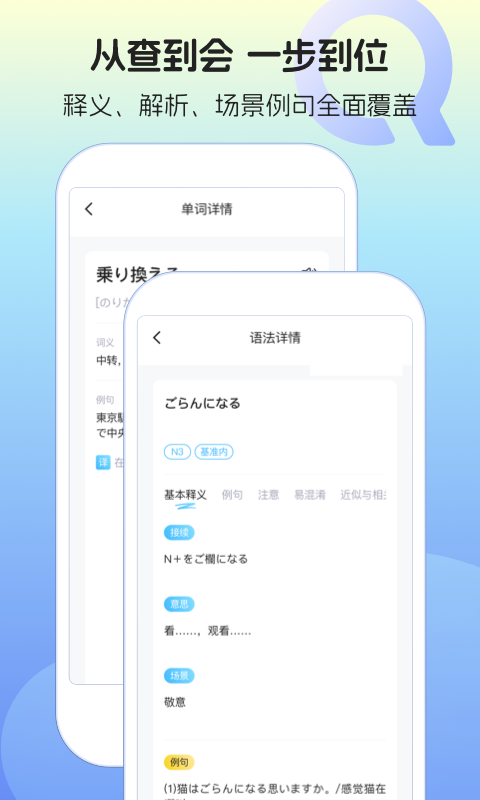 1. 内容权威:语法点标注明确出处(如《大家的日语》《新完全掌握》等主流教材),例句均经母语者审校;