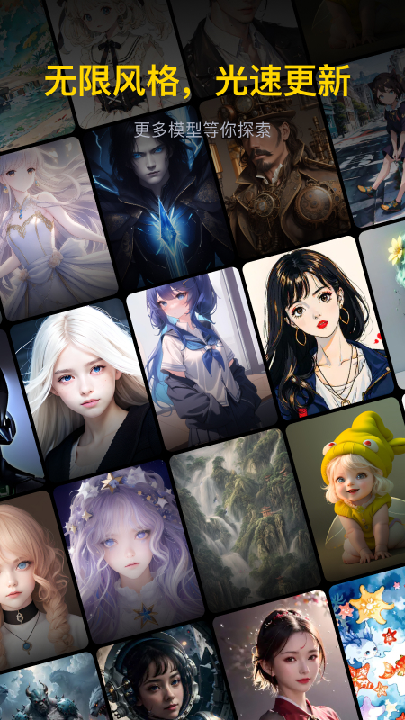 2. 内置多种主流模型与风格选项(如写实、插画、国风、像素风等),满足多样化创作需求;