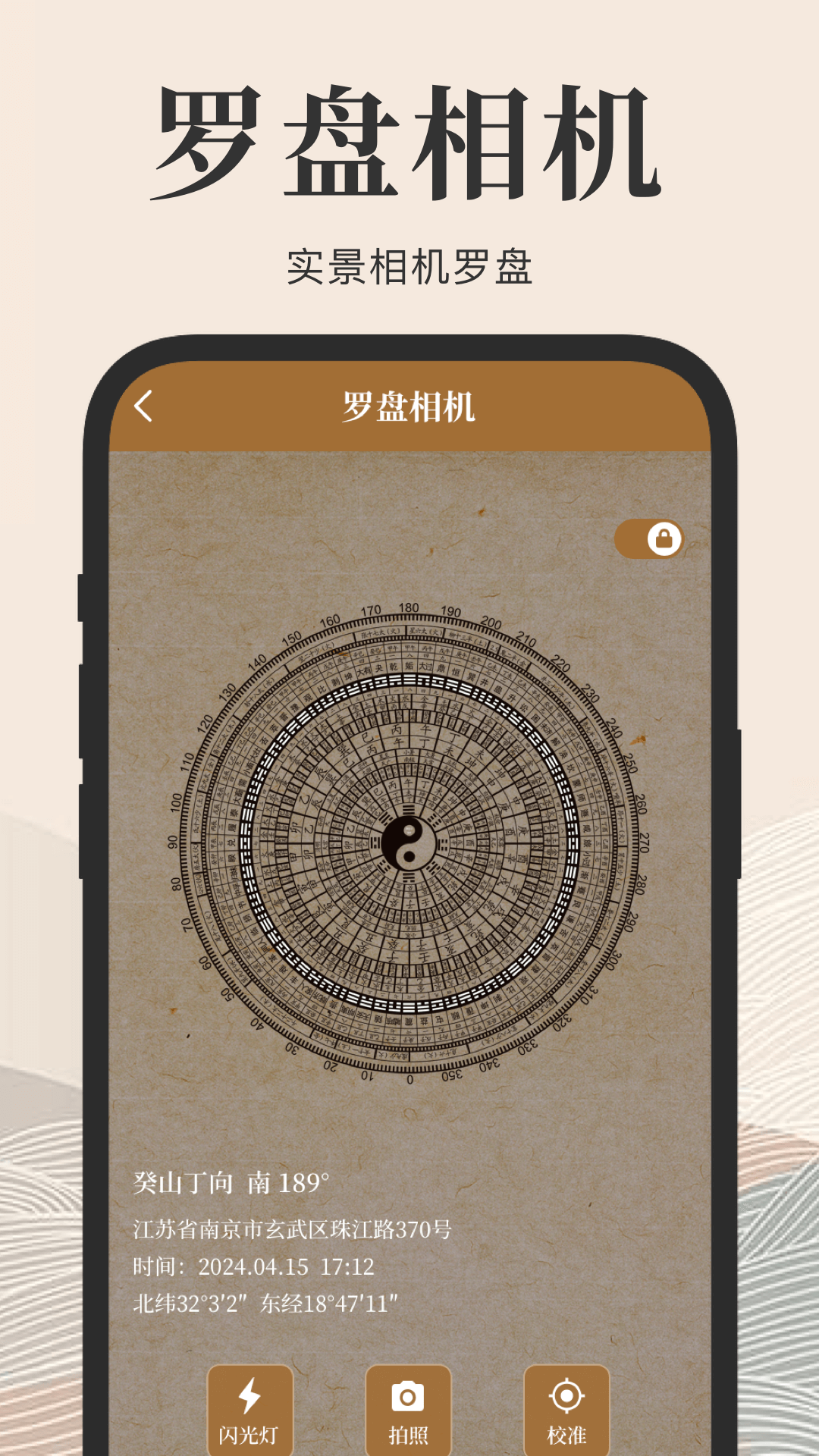 3. 点击屏幕中央可切换真北/磁北模式,长按可快速重置校准