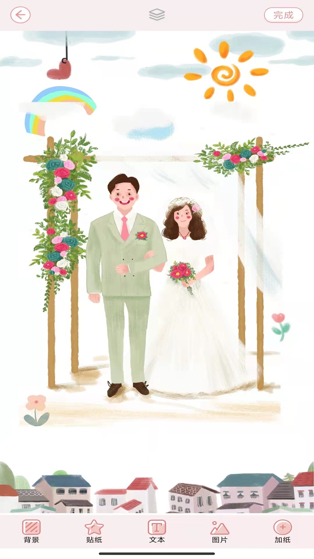 3. 在编辑页中添加文字、插入贴纸、更换背景或使用画笔工具自由创作