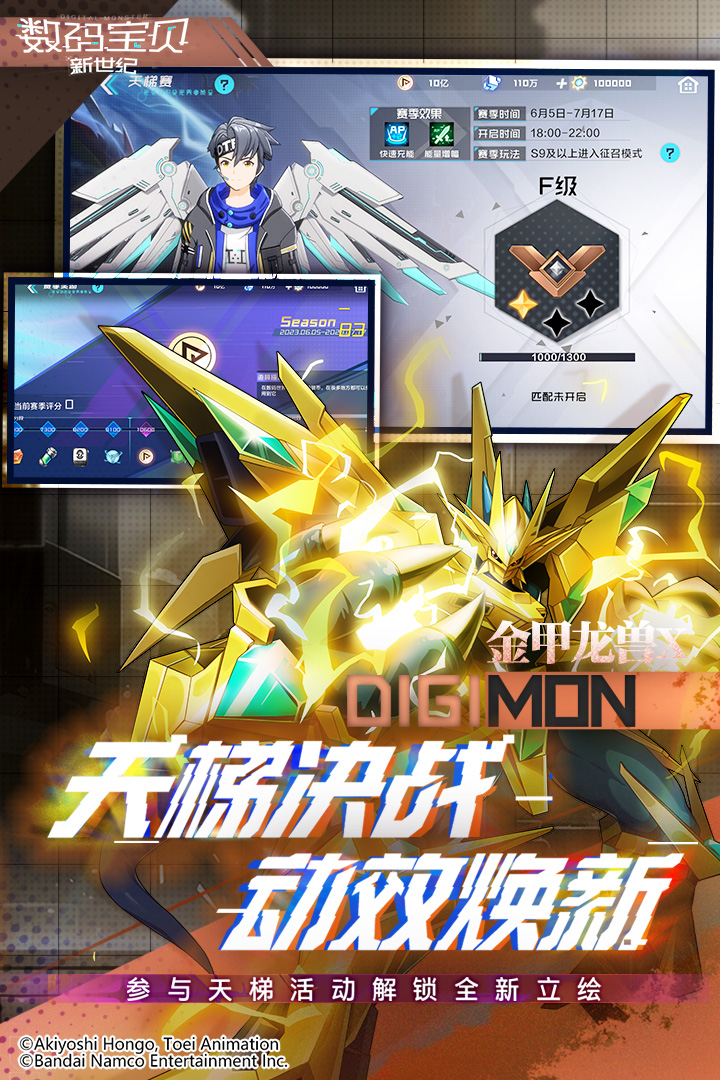 《数码宝贝:新世纪》是一款由万代南梦宫正版授权、国内厂商研发的策略卡牌类手机游戏。游戏以经典动画《数码宝贝》系列为背景,高度还原了亚古兽、暴龙兽、天使兽等数百只数码宝贝形象及进化体系,并融合原创剧情与多元宇宙设定,为玩家提供沉浸式的数码世界冒险体验。
