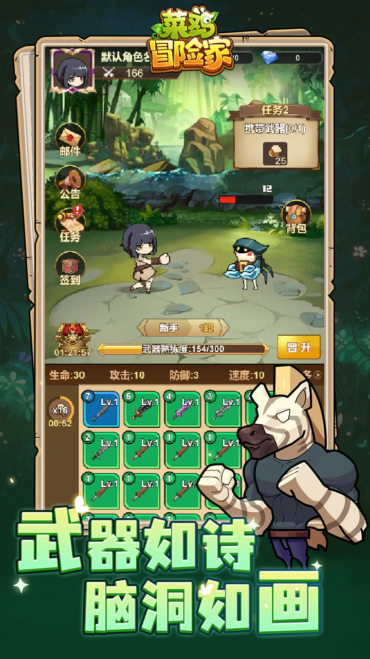菜鸡冒险家是一款轻松有趣的休闲冒险类手机游戏,玩家将扮演一位初出茅庐的“菜鸡”冒险者,在奇幻世界中探索地图、收集道具、挑战小怪、完成任务,并逐步成长为可靠的冒险伙伴。游戏画风清新可爱,操作简单易上手,适合各年龄段玩家在碎片时间体验成长与乐趣。