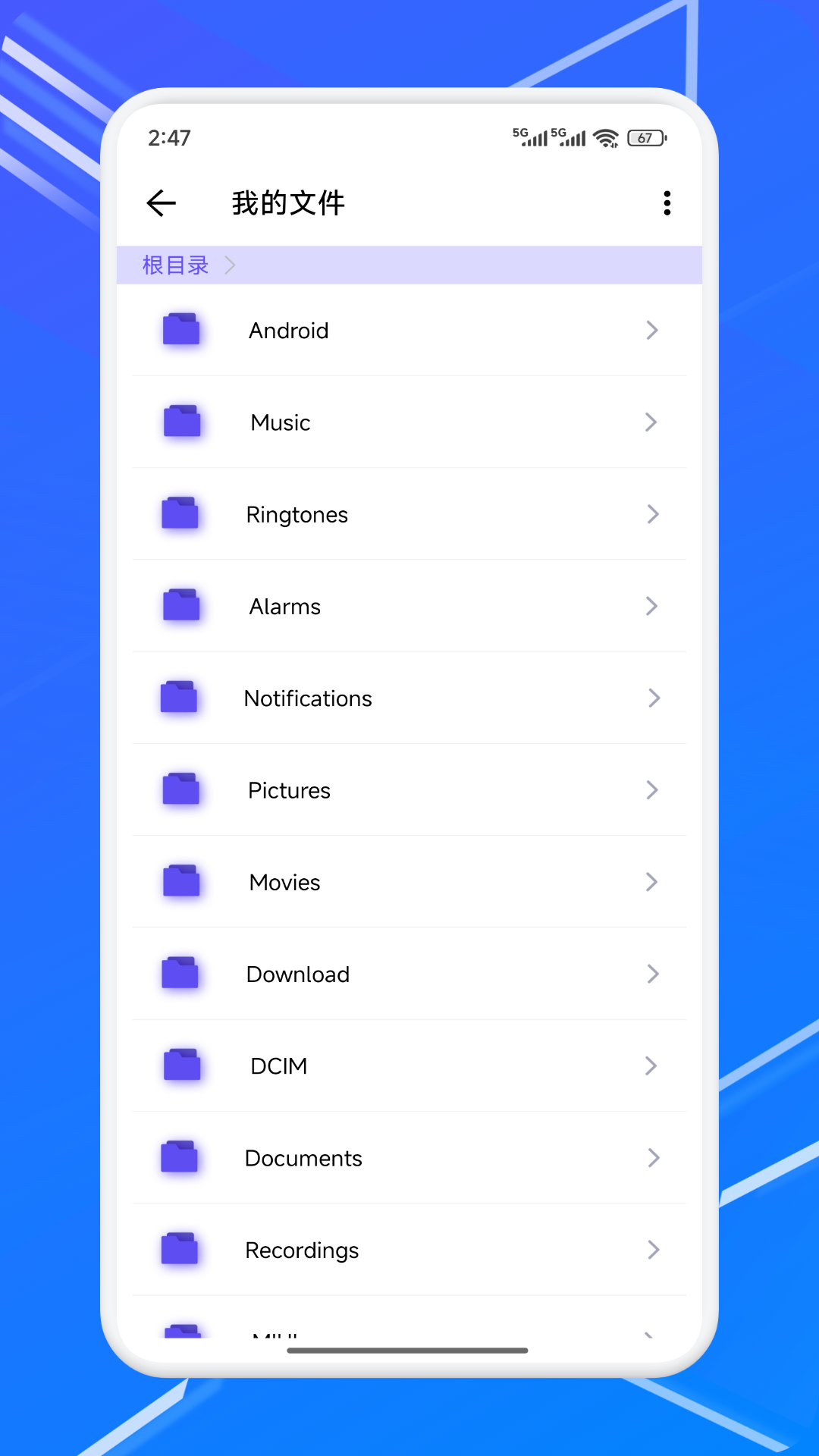 - 下载并安装Files应用,启动后进入主界面