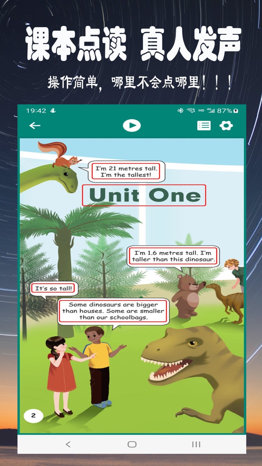 - 进入课本目录,点击想要学习的单元或课文,即可开始点读。