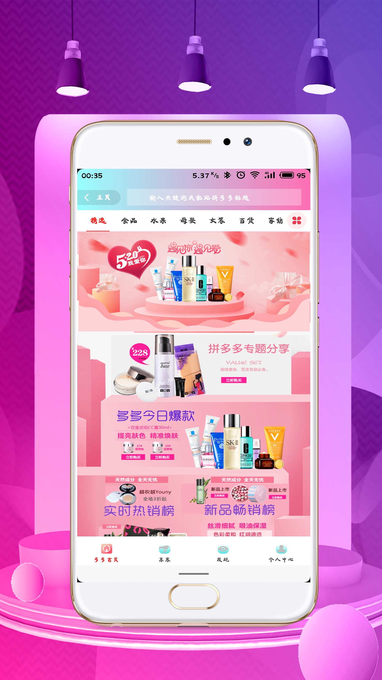 - 在首页浏览热门优惠活动或使用搜索功能查找商品