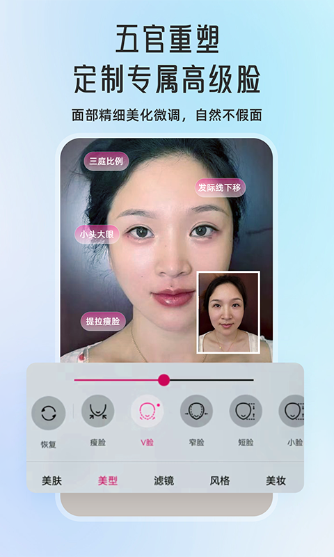 4. 调整瘦脸、大眼等参数至满意效果