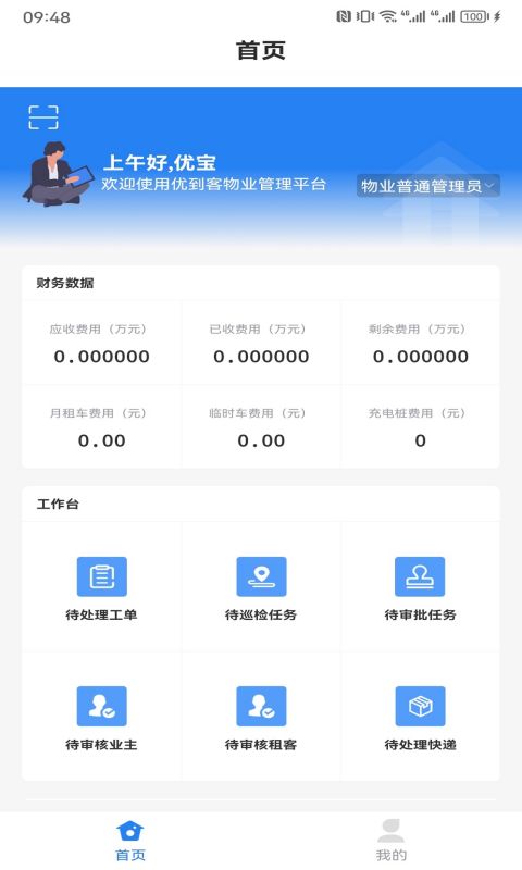 1. 下载并安装优到客物管APP或登录网页端,使用企业账号注册登录。