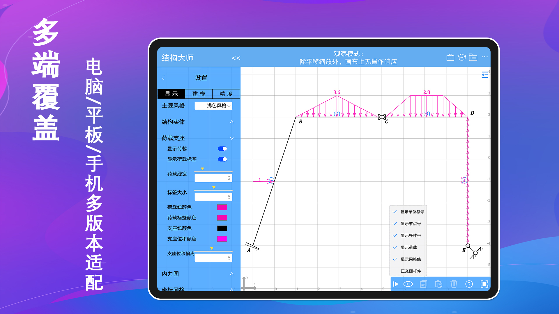1. 支持多种结构类型建模,涵盖静定与超静定结构分析