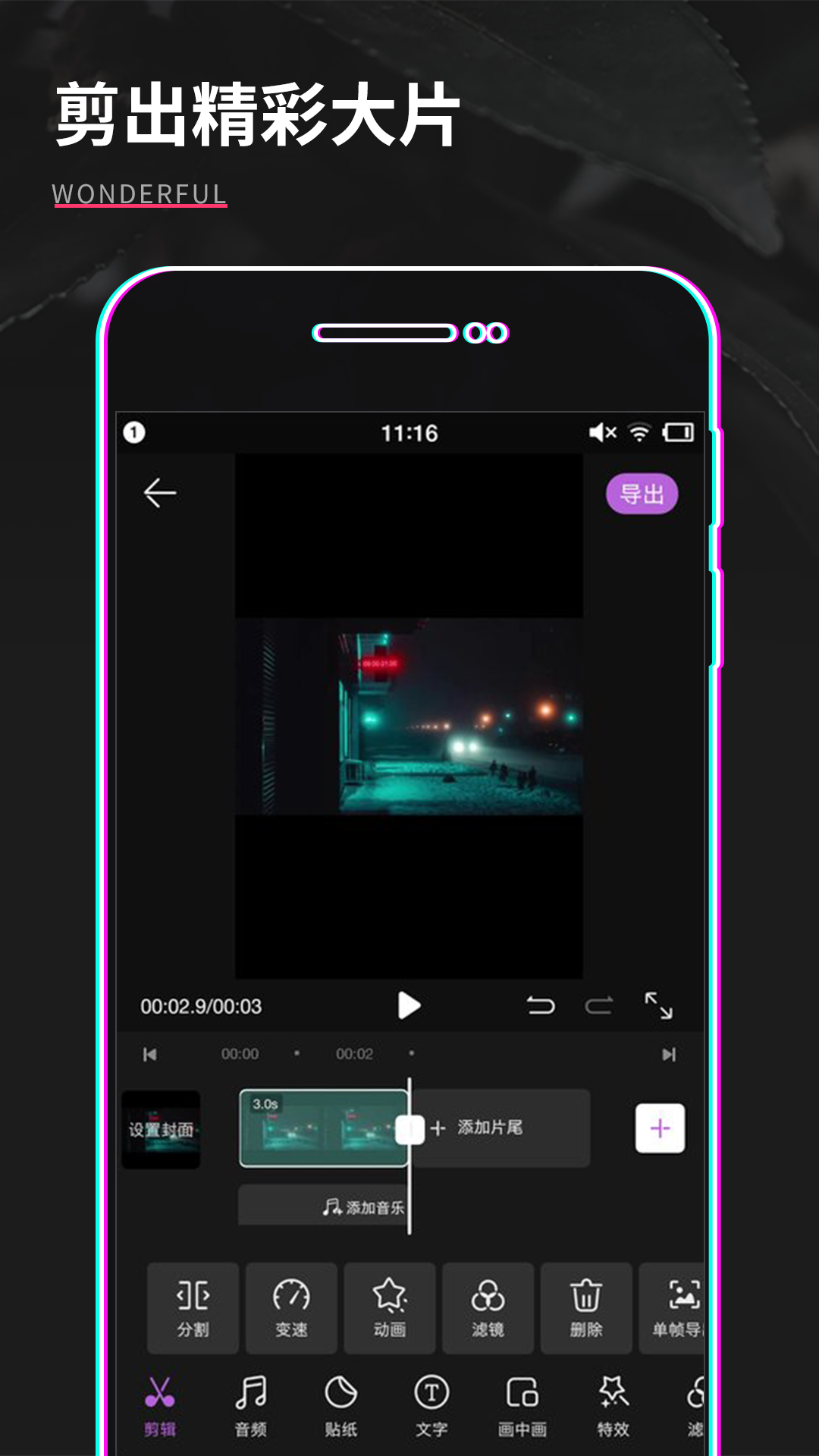 5. 导出:点击右上角“导出”,选择分辨率与帧率,保存至设备相册