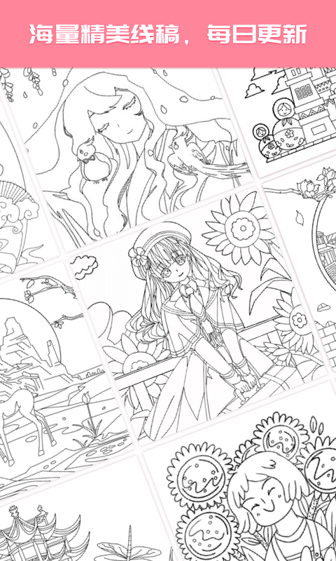 1. 打开应用后,在首页滑动浏览或通过分类/搜索选择心仪线稿;