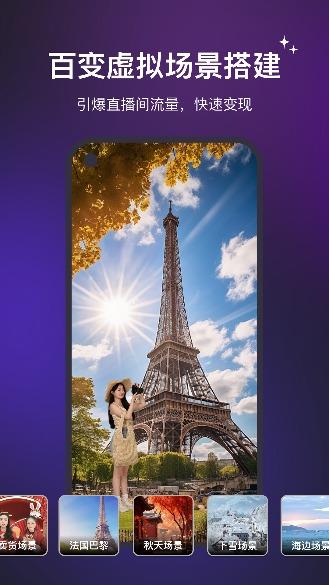 2. 内置轻量级虚拟摄像头与绿幕抠像功能,实时替换背景;