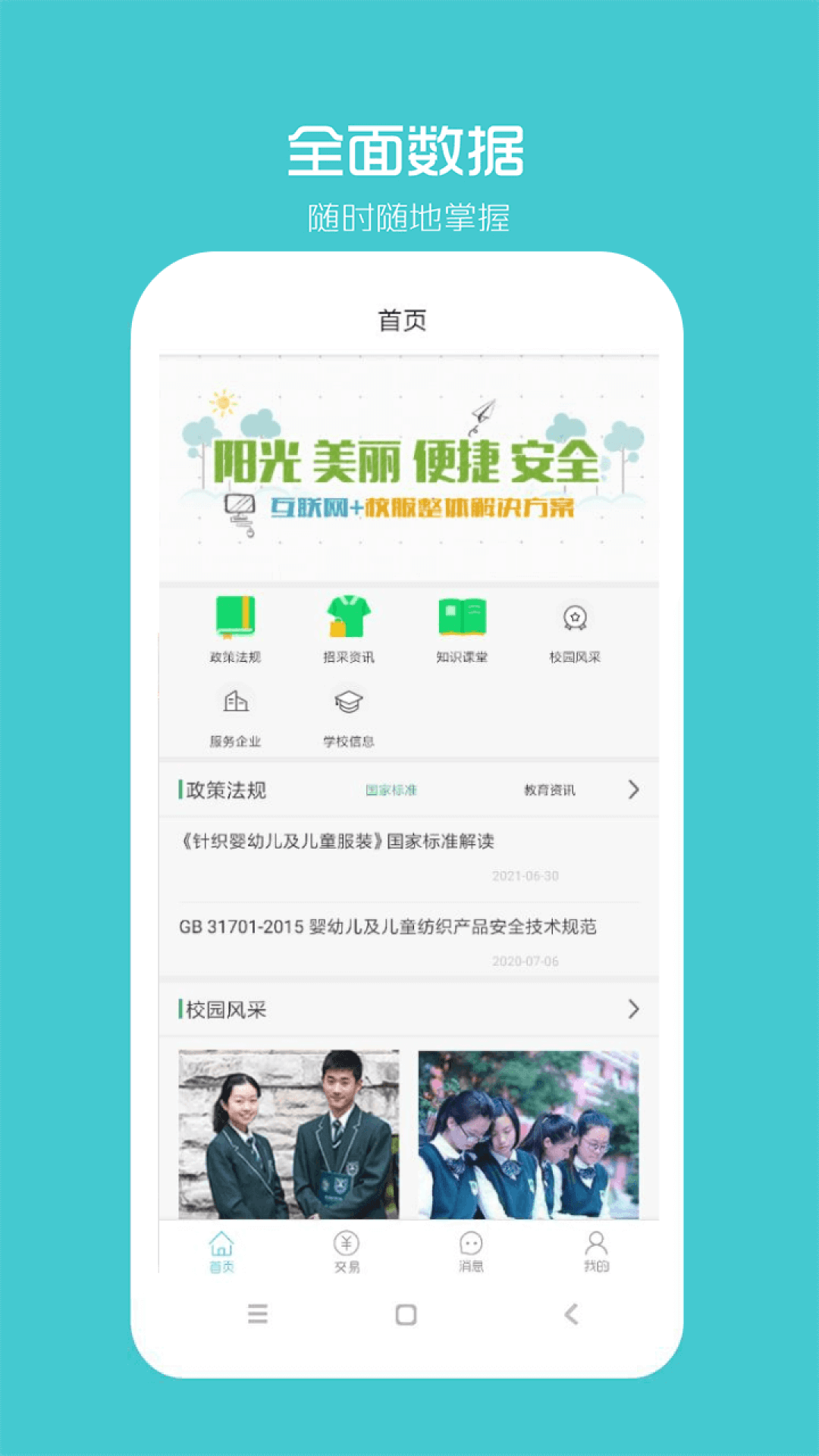 1. 下载“阳光智园”官方APP或关注认证微信公众号,完成机构绑定与身份认证