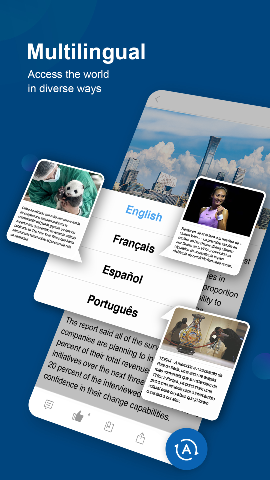 China Daily(中国日报)是一款由中国日报报业集团官方推出的新闻资讯类移动应用,旨在向全球用户及时、准确、客观地提供中国及国际时政、经济、文化、科技、生活等领域的双语(中英文)新闻内容。该应用支持个性化订阅、离线阅读、语音播报等功能,是了解中国发展与世界动态的重要数字平台。