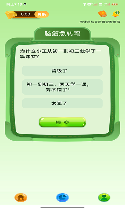 3. 点击底部“开始答题”进入每日挑战,答对可积累学习积分;