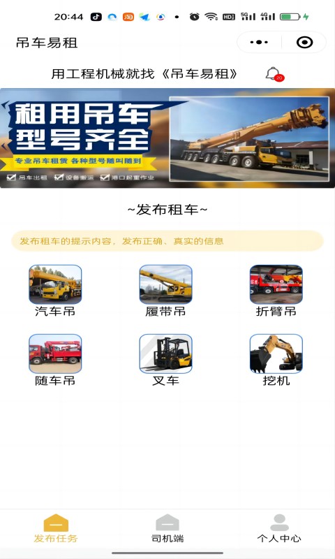 - 下载并安装“吊车易租”应用,注册账号并完成实名认证。