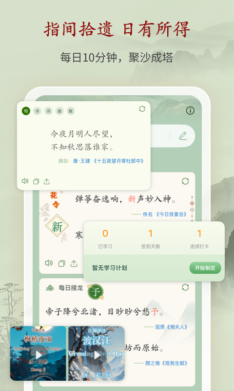 诗词曲赋是一款专注于中华古典文学的学习与欣赏类应用,集诗词、曲艺、辞赋等传统文化内容于一体。用户可以通过该应用查阅海量经典作品,了解作者生平、创作背景及注释解析,同时支持朗读、收藏、分享等功能,适合学生、教师及国学爱好者使用。