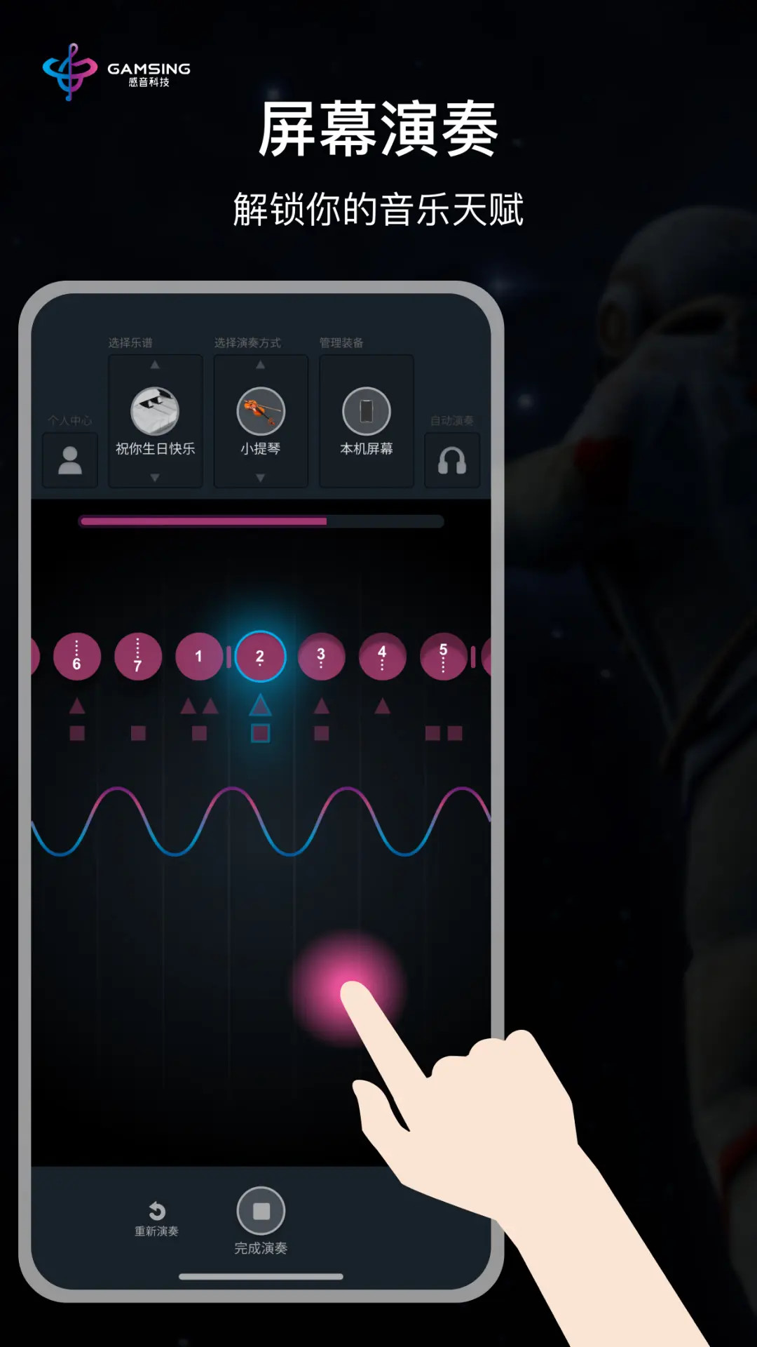 - 选择喜欢的曲目,开启跟弹功能逐步完成演奏