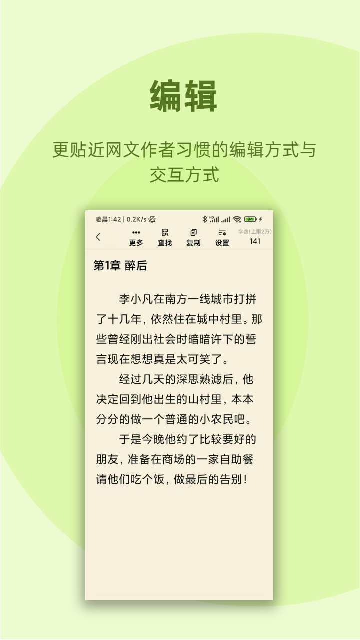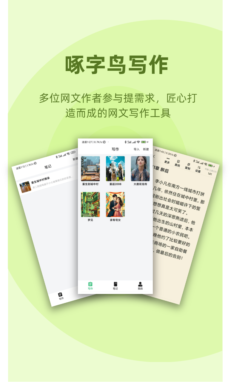 啄字鸟写作是一款专为写作者设计的高效创作工具,适用于小说、散文、日记等多种文本类型的撰写与管理。该应用界面简洁,操作流畅,支持多设备同步,帮助用户随时随地记录灵感、组织章节结构,并提供专注模式以提升写作效率。无论是专业作家还是写作爱好者,都能通过啄字鸟写作实现更有序、更高效的创作体验。