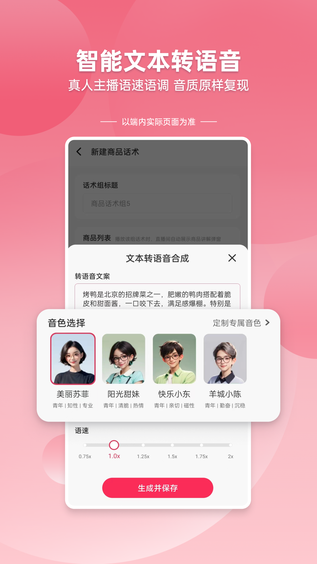 - 点击“语音预览”试听合成语音,调节语速与语调
