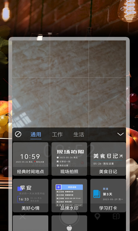 - 选择合适的水印模板(如工作打卡、工地巡检、学习记录等)