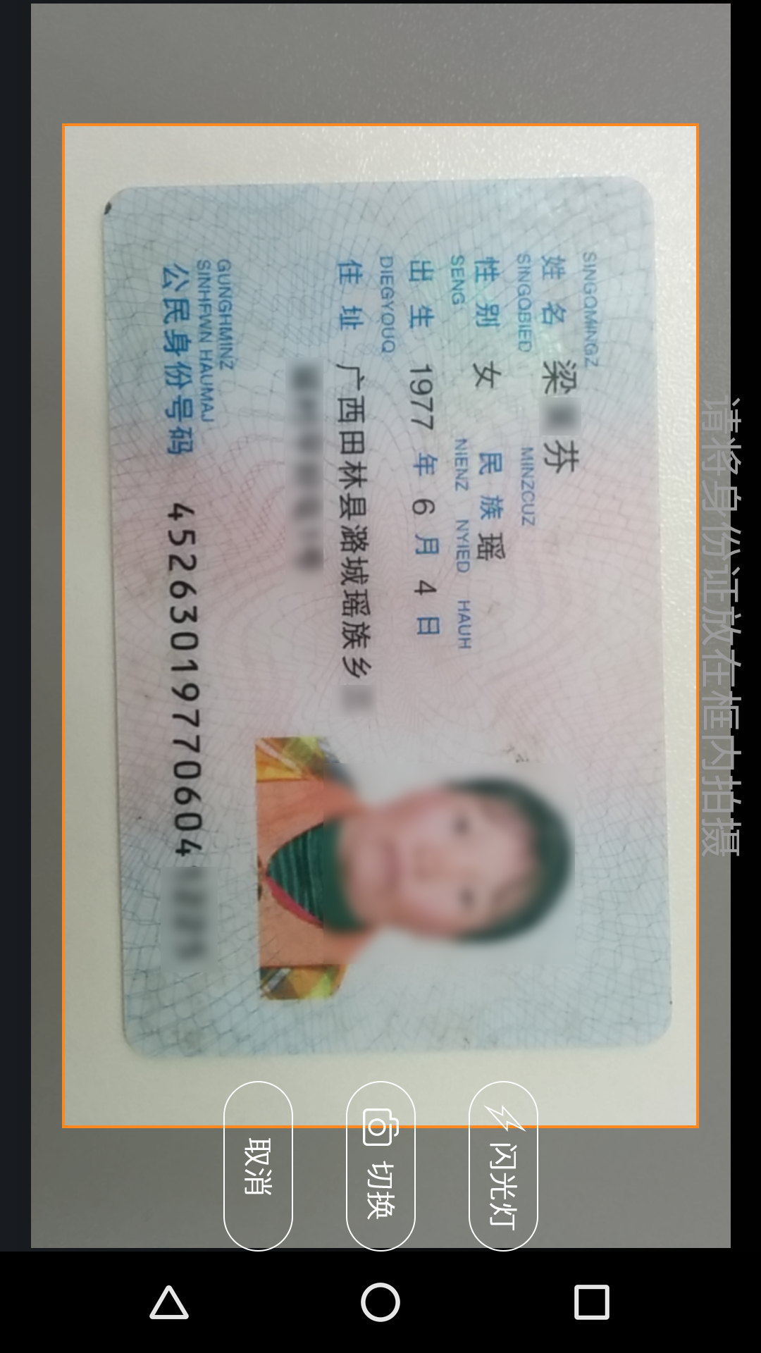 - 将身份证正面置于拍摄框内,确保四角清晰可见 <4>点击拍照按钮,系统自动识别并提取姓名、性别、身份证号等信息 <5>确认信息无误后,可选择保存或导出至指定系统