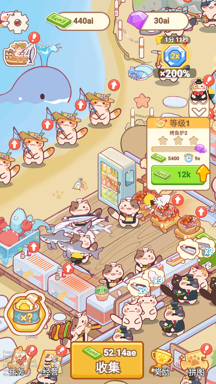4. 将捕获的鱼放入渔场养殖,赚取金币并升级设施。