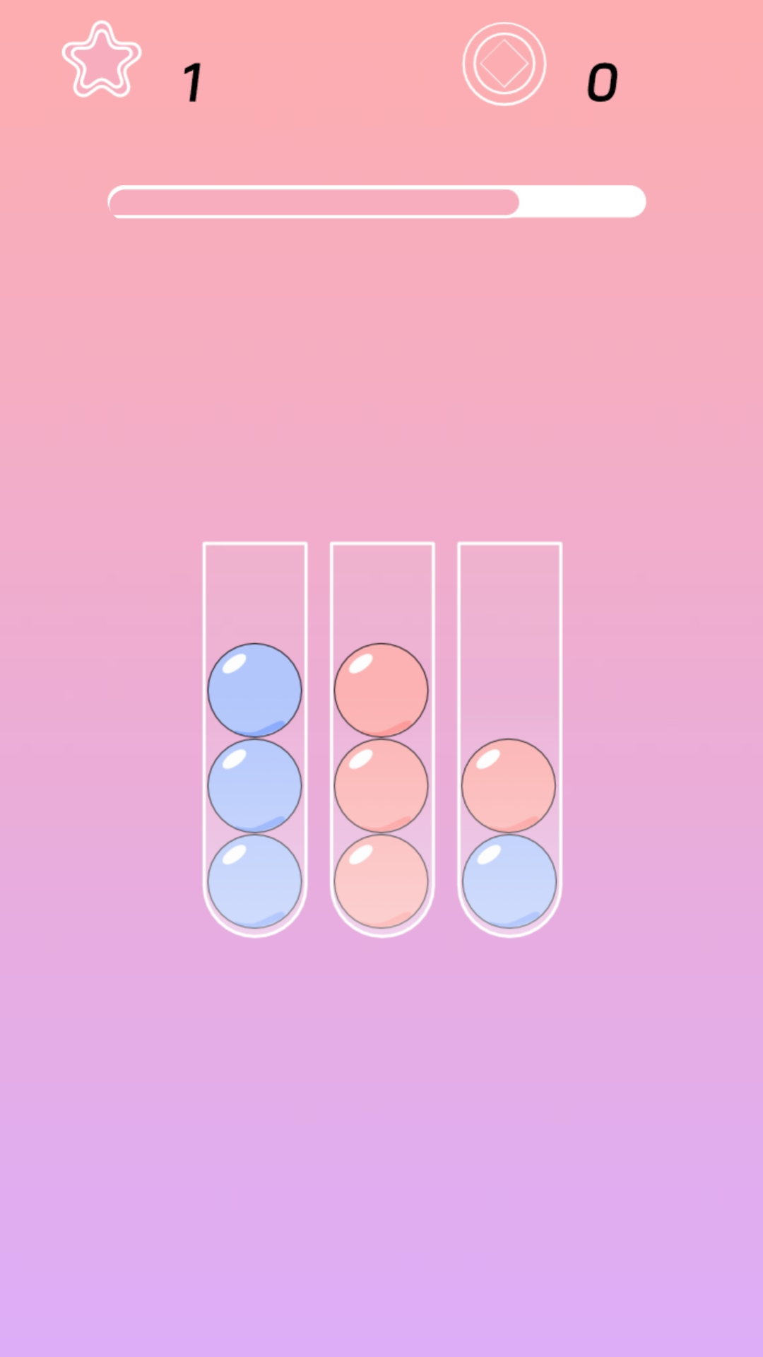 2. 点击一个试管顶部的球,再点击另一个可接收的试管(需满足:目标管未满且顶部为空或同色);