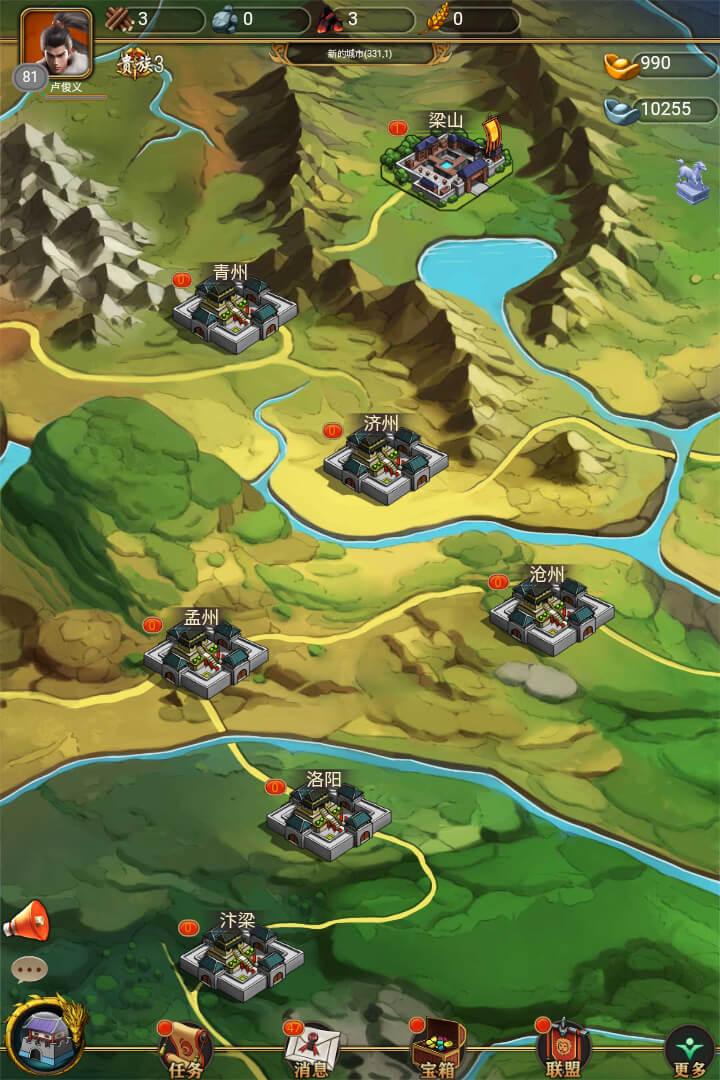 3. 通过底部指令栏执行移动、驻守、侦察等基础指令