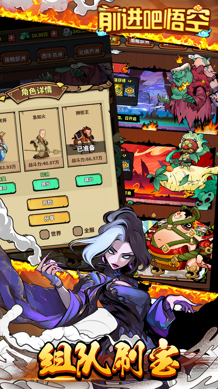 4. 收集金箍棒碎片与蟠桃可提升角色能力,在“修炼”界面进行升级;