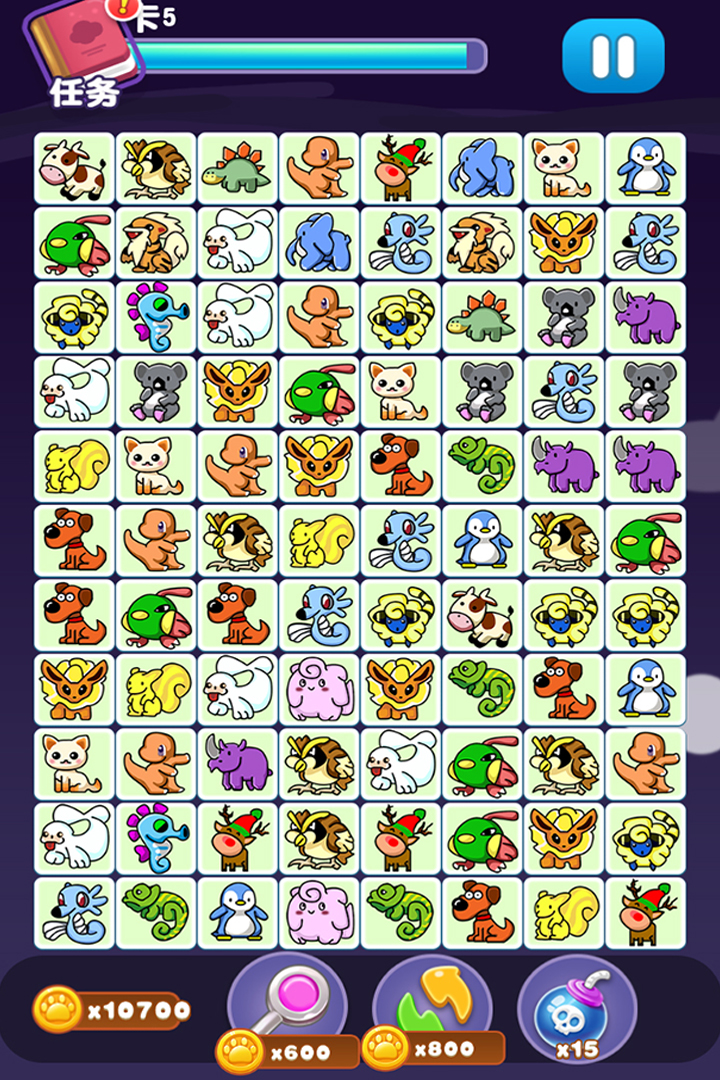宠物连连消是一款轻松益智的消除类休闲游戏,以可爱萌趣的宠物形象为核心元素。玩家通过连接两个或以上相同宠物图标完成消除,达成关卡目标,解锁新地图、新宠物和趣味道具。游戏画风清新柔和,操作简单易上手,适合各年龄段用户在碎片时间放松娱乐。