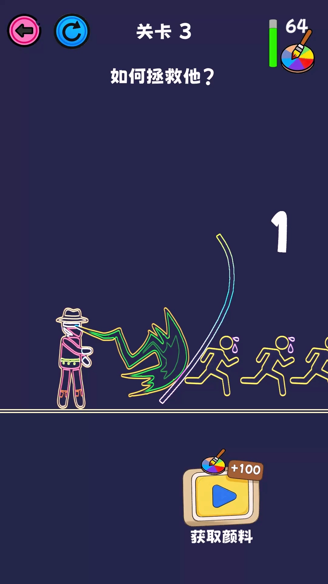4. 若未通关,点击重试按钮可重新绘制线条