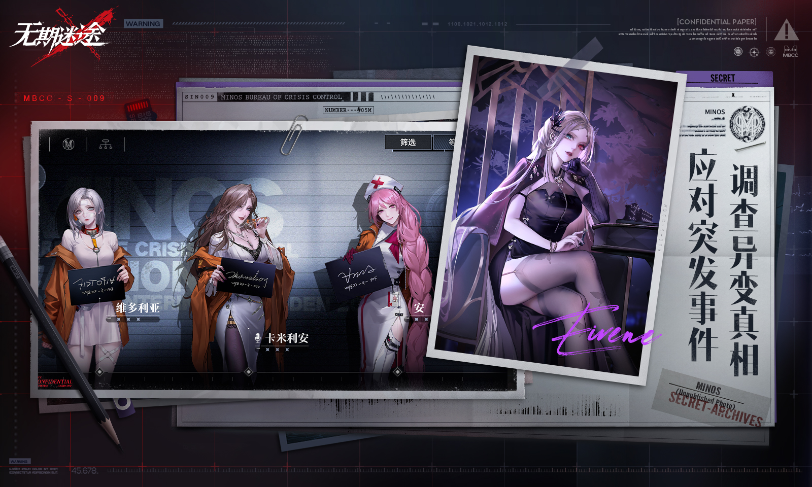 《无期迷途》是一款由网易自研的末世幻想题材策略角色扮演手游。游戏以近未来都市“米诺斯”为背景,融合超自然异能、心理叙事与战术回合制战斗系统,玩家将扮演“禁闭者”管理者,带领拥有特殊能力的角色对抗失控现象,探索世界真相与人性边界。