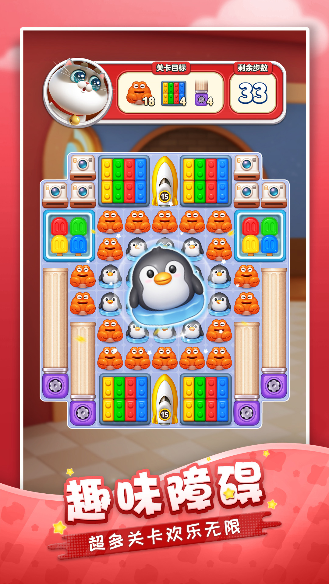 - 完成指定目标(如清除障碍、收集物品)以通过关卡