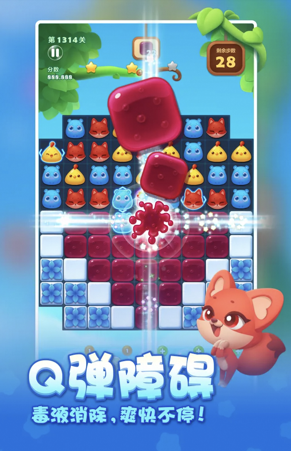开心消消乐是一款轻松有趣的休闲益智类消除游戏,由国内知名游戏公司开发。游戏以清新可爱的画风、简单易上手的操作和丰富多样的关卡设计深受各年龄段玩家喜爱。玩家通过滑动手指交换相邻的动物图标,将三个或以上相同图标连成一线即可完成消除,达成关卡目标后进入下一关。游戏融合了多种趣味玩法和挑战模式,适合在碎片时间中放松心情。